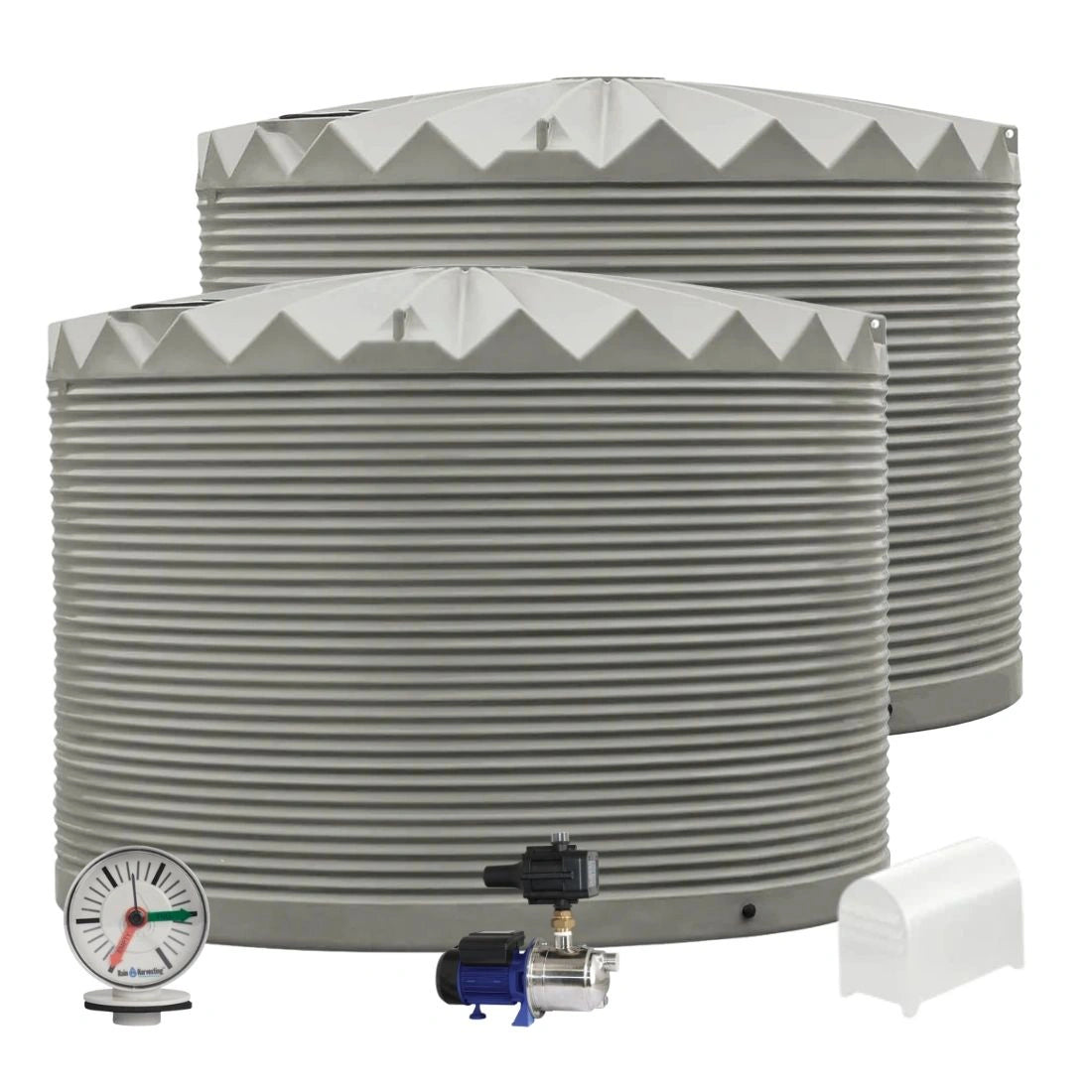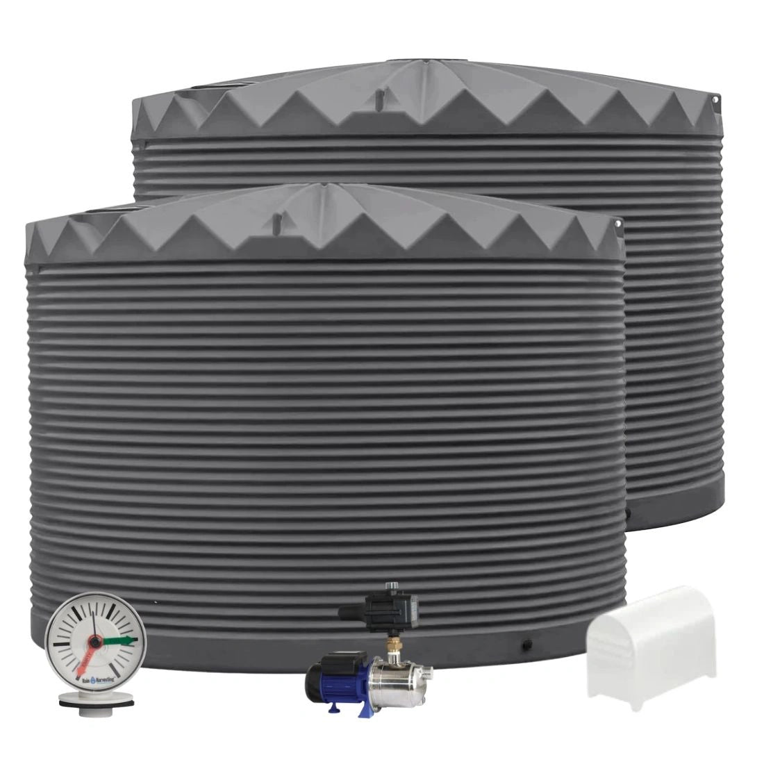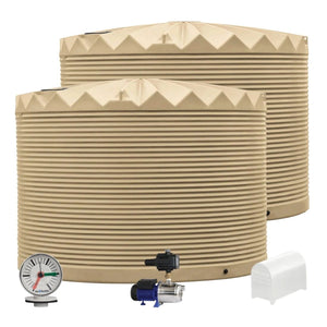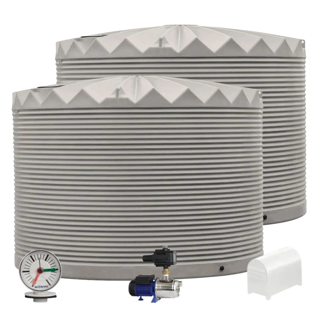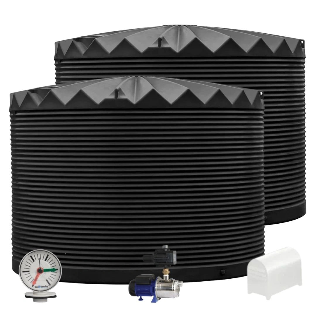 2 x 22,500L Rainwater Tanks + Pump + Pump Cover + Dial Gauge