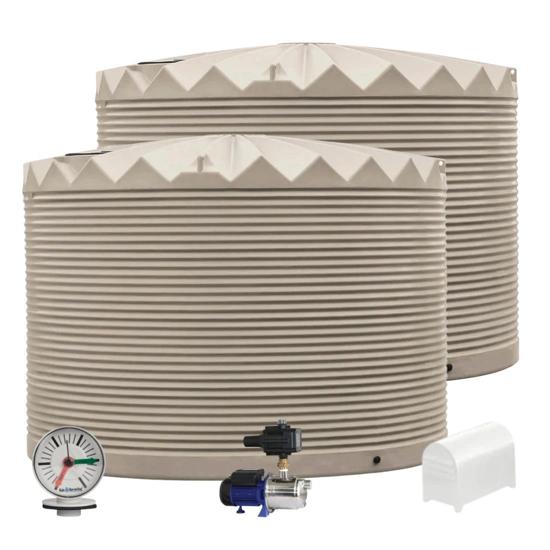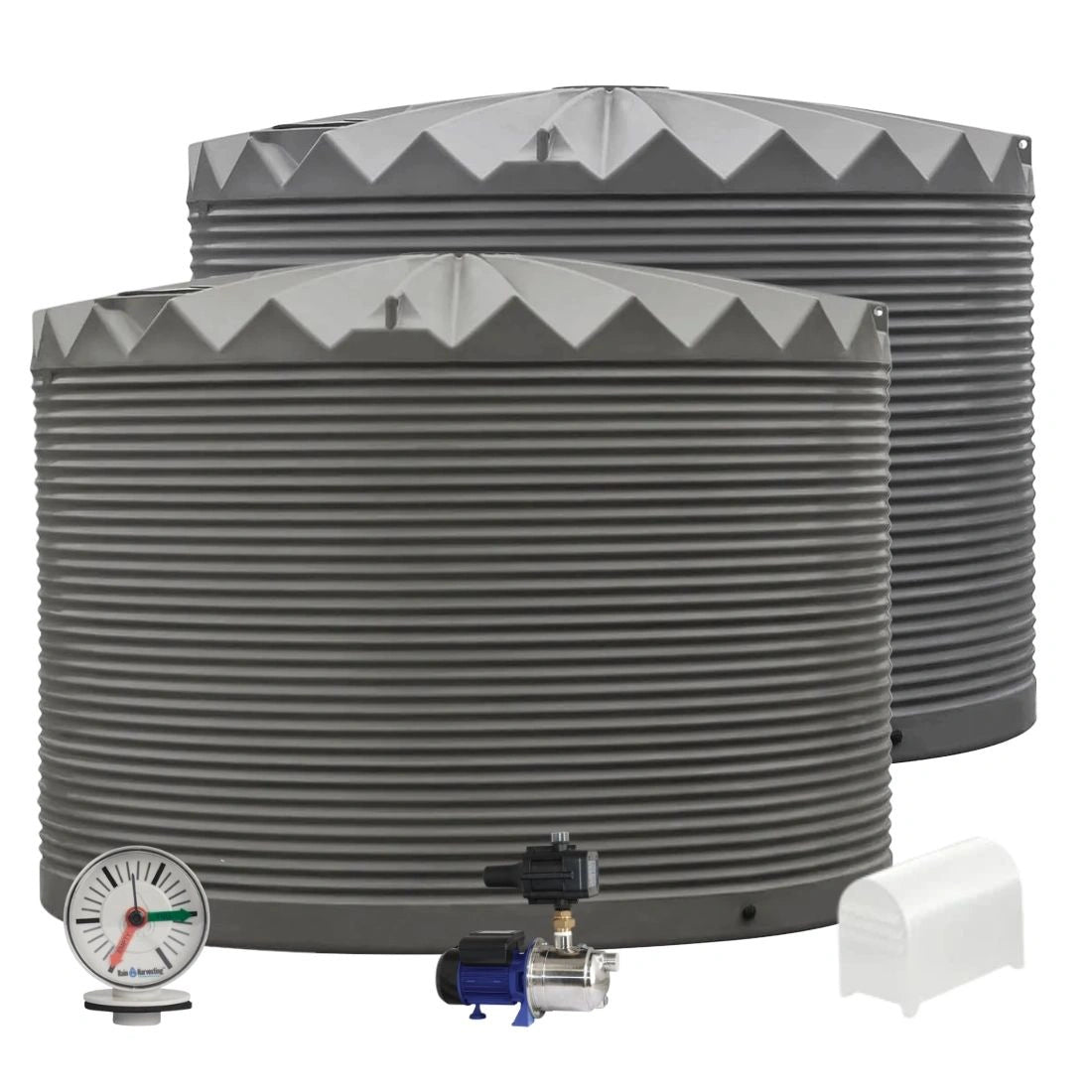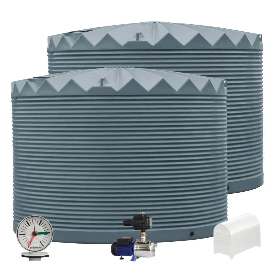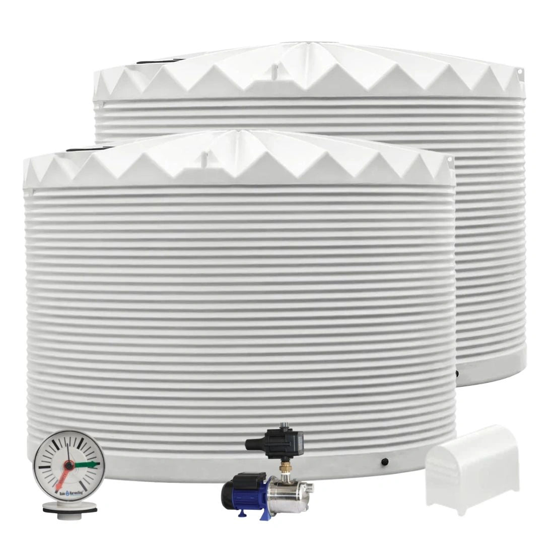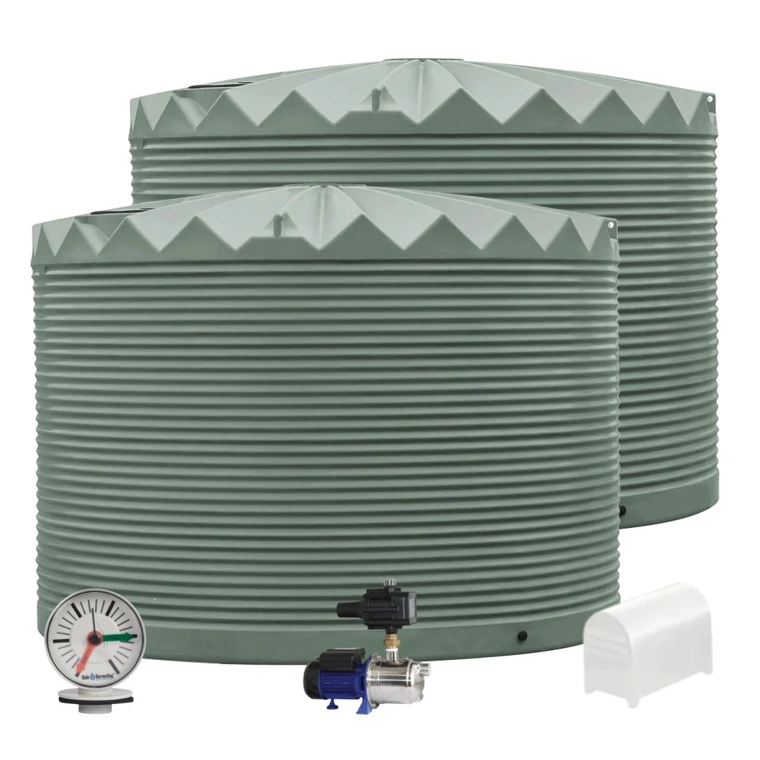 2 x 22,500L Rainwater Tanks + Pump + Pump Cover + Dial Gauge