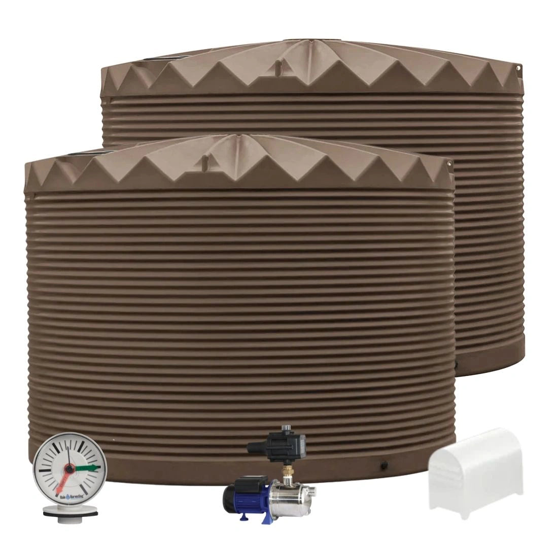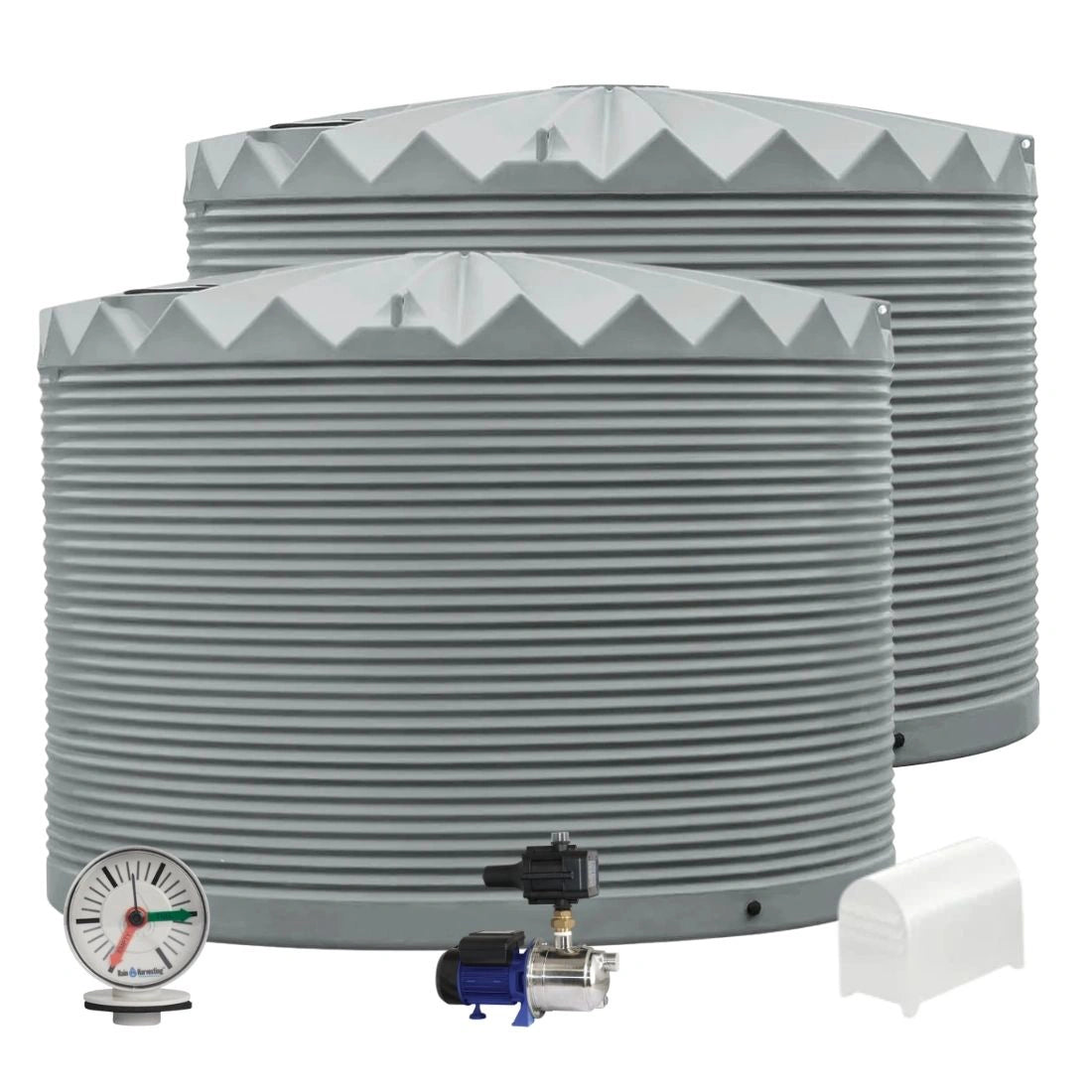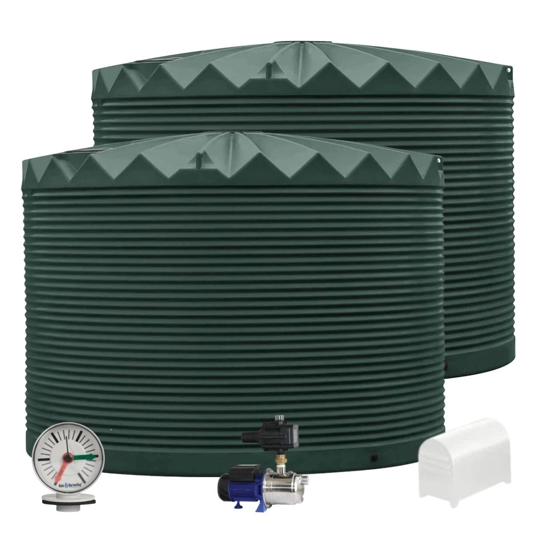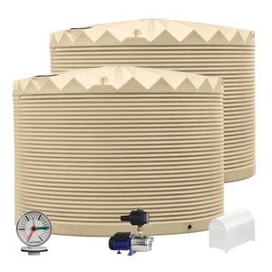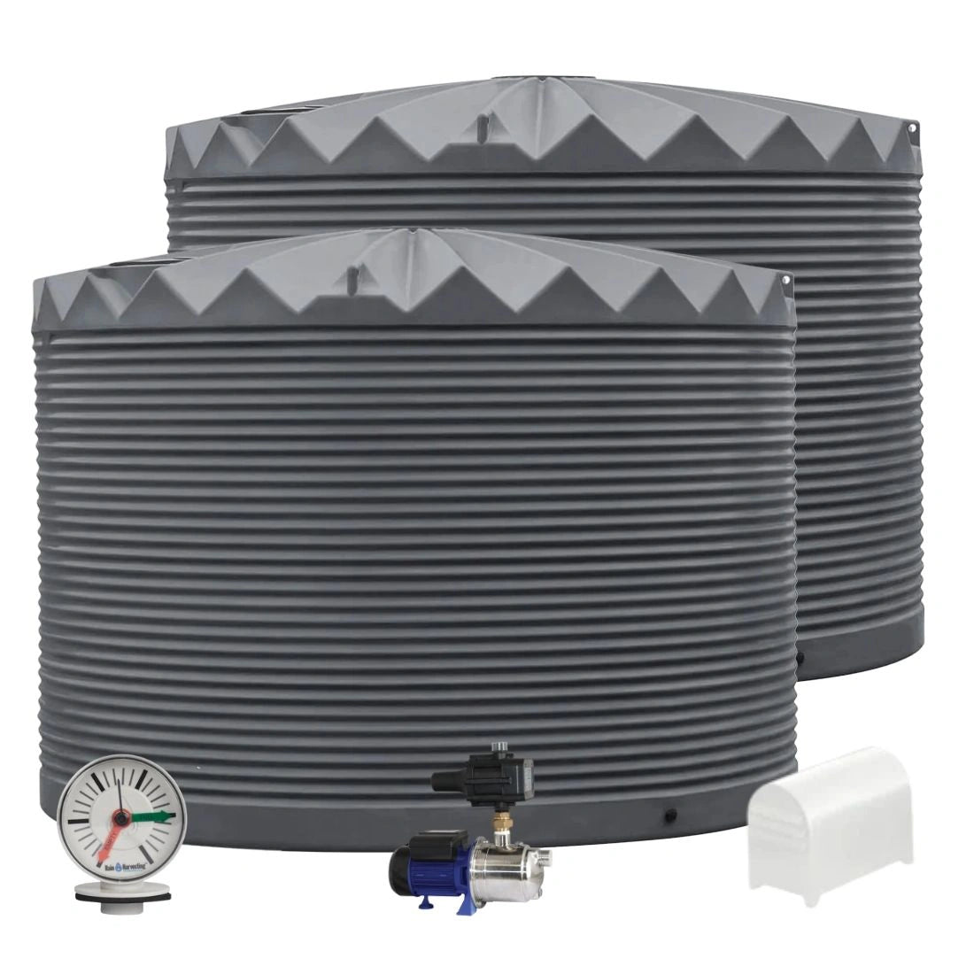 2 x 22,500L Rainwater Tanks + Pump + Pump Cover + Dial Gauge