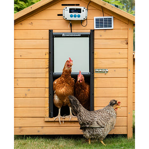 The ChickenGuard Pro Solar Automatic Door Opener protects your chickens day and night automatically. This UK handcrafted system opens and closes your coop using either timer or light sensor settings. Solar power means no wiring or battery changes are needed for operation.