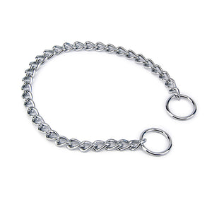 These handy training tools feature welded links for reliable strength and long-lasting performance. Available in four practical sizes to accommodate different dog breeds and neck measurements. The chrome construction provides easy maintenance while the design suits short-haired dogs that require effective training aids.