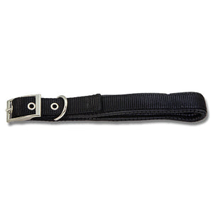 The Dog Collar with Padding & Nylon Webbing provides luxury and comfort through double layered machine sewn construction. This premium collar features nylon webbing backed with soft padded synthetic lining for additional comfort. The 25mm wide nylon webbing increases to 30mm with padding, offering enhanced comfort for your dog.