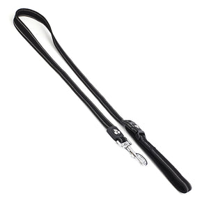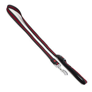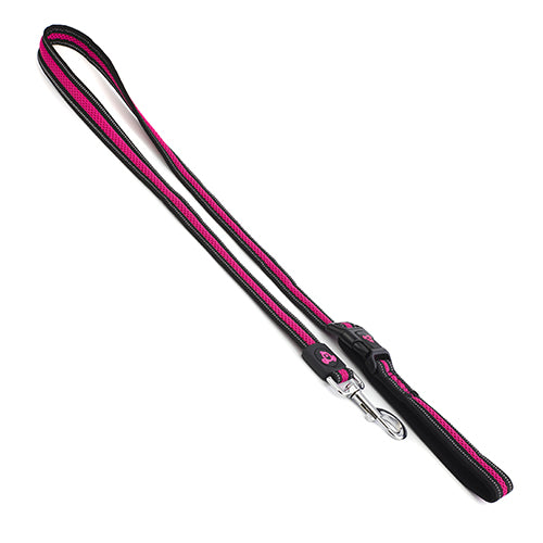 The multi functional design adjusts from full 120cm length down to shorter training lengths for close control. Reflective thread enhances visibility during low light conditions while the padded neoprene handle provides comfortable grip. Available in six colours with reflective stitching including orange, black, red, blue, pink and green.