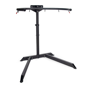 The adjustable height ranges from approximately 56cm to 89cm to suit your needs. Heavy duty construction ensures stability during use on concrete or dirt surfaces. Four pegs are included to secure the stand into earth for extra support.