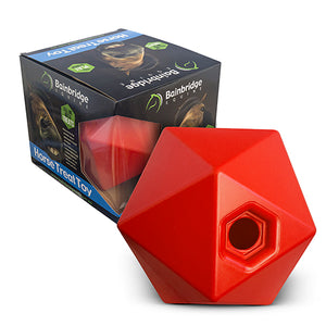 The Horse Toy Treat Ball keeps your horse busy and happy while slowing down treat eating. This interactive toy can help stop boredom, worry, and stress in stables and paddocks. Fill the ball with treats and watch your horse push it around to get them out.