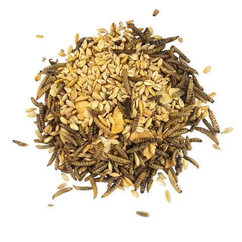 The Morning Mix serves as the perfect breakfast treat for both farm flocks and pet chickens with 100% natural ingredients. The black soldier fly larvae, banana and almonds create boredom busting foraging entertainment. The cheerful yellow cereal box packaging adds a fun element to your morning poultry routine.