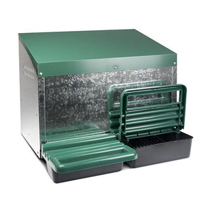 Keep your poultry's nesting area tidy and efficient with the Bainbridge 2-hole metal nesting box. Designed for external mounting, it allows you to gather chicken eggs from outside the coop, reducing disruption to your hens. The rollaway egg feature keeps eggs safe by gently moving them away after laying, while the ventilated design and easy-to-clean plastic insert ensure a hygienic nesting space.