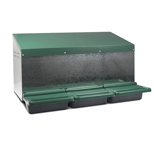 The Bainbridge 3-hole metal nesting box is a practical and durable choice for any poultry setup. Designed for external mounting, it allows you to collect chicken eggs from outside the coop, keeping the nesting area undisturbed.