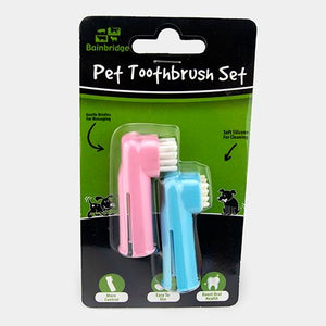 The Pet Toothbrush Set comes with two different brushes for complete mouth care. One gentle brush cleans teeth well while the soft silicone brush massages gums. Both fit on your index finger so you can feel what you're doing and control the pressure better.