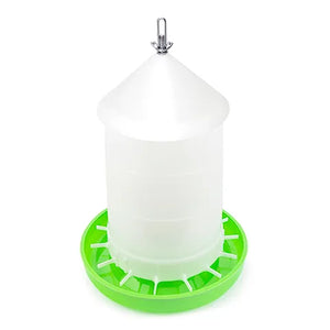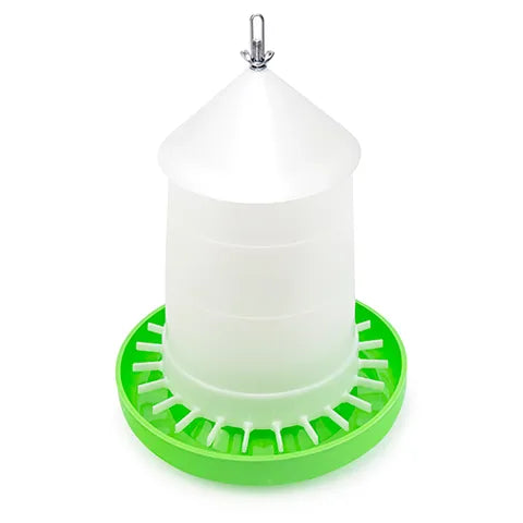 The smart Poultry Feeder with Lid keeps your chicken feed dry and fresh while stopping waste and preventing wild birds from stealing it. This well built feeder has a secure lid that blocks rain, stops chickens from roosting on top, and keeps feed clean from dirt and pests.