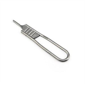 The Folding Scalpel Handles feature a wider hand grip for comfortable use during procedures. The folding design protects the blade when not in use and reduces injury risk. Available in two sizes to accommodate different scalpel blade requirements.