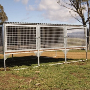 Available in 1 bay, 2 bay, 3 bay configurations plus add on bay options for expanding systems. The raised design with elevated bed box keeps dogs dry and comfortable while making cleaning and maintenance easier. Hot dip galvanised frames with pressed steel walls provide long lasting protection in Australian conditions.